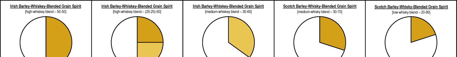 Barley-Whiskey-Blended Grain Spirits are made by blending barley whiskey with grain spirit, usually with the latter being the majority.