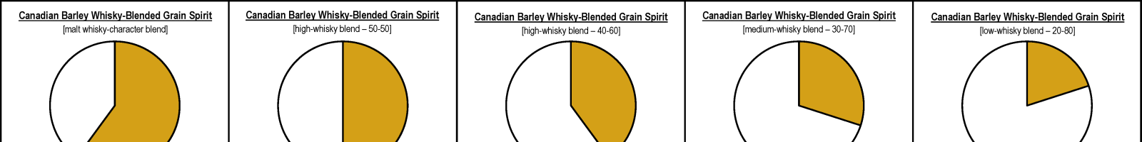 Canadian Barley-Whisky-Blended Grain Spirit is made by blending barley whisky with grain spirit, usually with the latter being the majority.