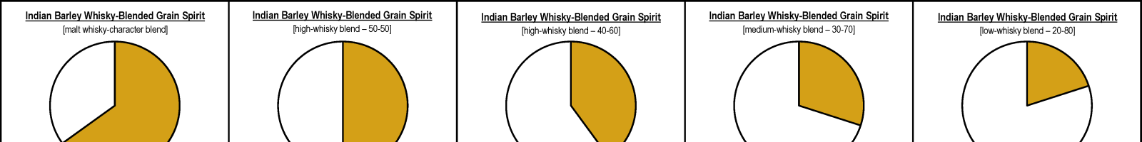 Indian Barley-Whisky-Blended Grain Spirit is made by blending barley whisky with grain spirit, usually with the latter being the majority.