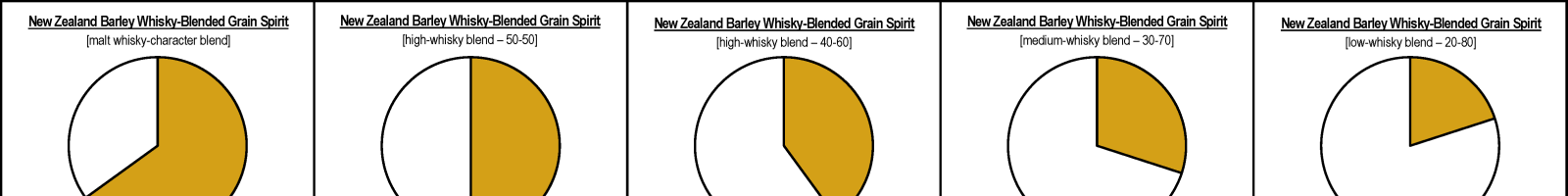 New Zealand Barley-Whisky-Blended Grain Spirit is made by blending barley whisky with grain spirit, usually with the latter being the majority.
